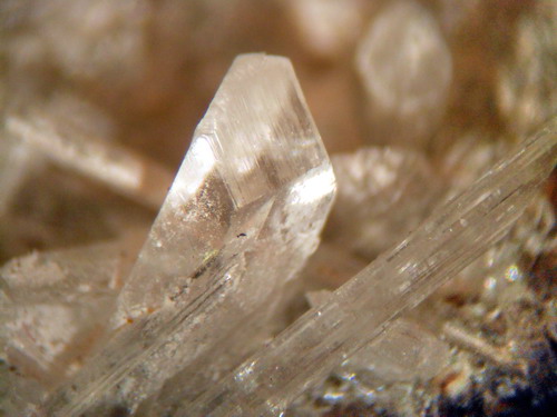 Information: Ca. 1,8 cm Hydroboracit durchspießt klaren Gipskristall.