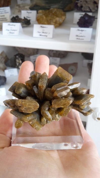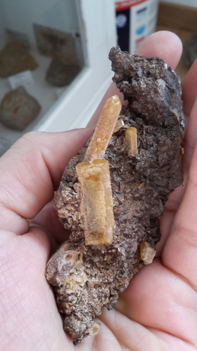 Hier noch eine Stufe mit 3 cm großen xx auf Siderit vom Gang Sulfidnaja, Stolln 7 bei Lauter im Erzgebirge.