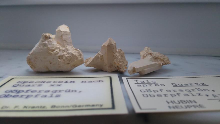 Talk Pseudomorphose nach Quarz von der Johanneszeche, Göpfersgrün, Fichtelgebirge. Bis ~2.5 cm |
