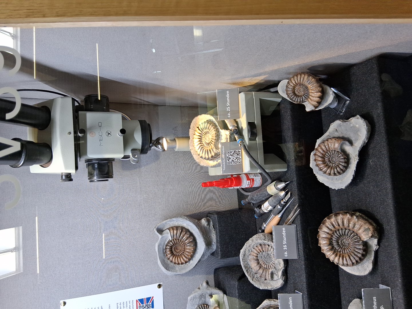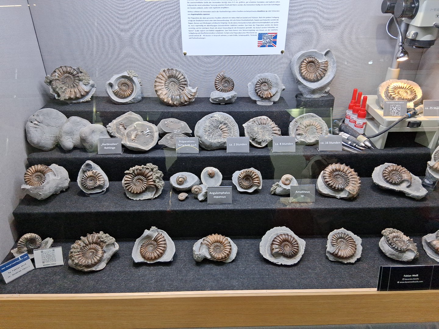 Am Sonnag wurde dann die beste Sammlervitrine prämiert. Gewonnen hat eine Ausstellung von Fabian Weiß, die Ammoniten in verschiedenen Abschnitten der Präparation zeigen. Vom Fundzustand bis zum vitrinenfertigen Stück.