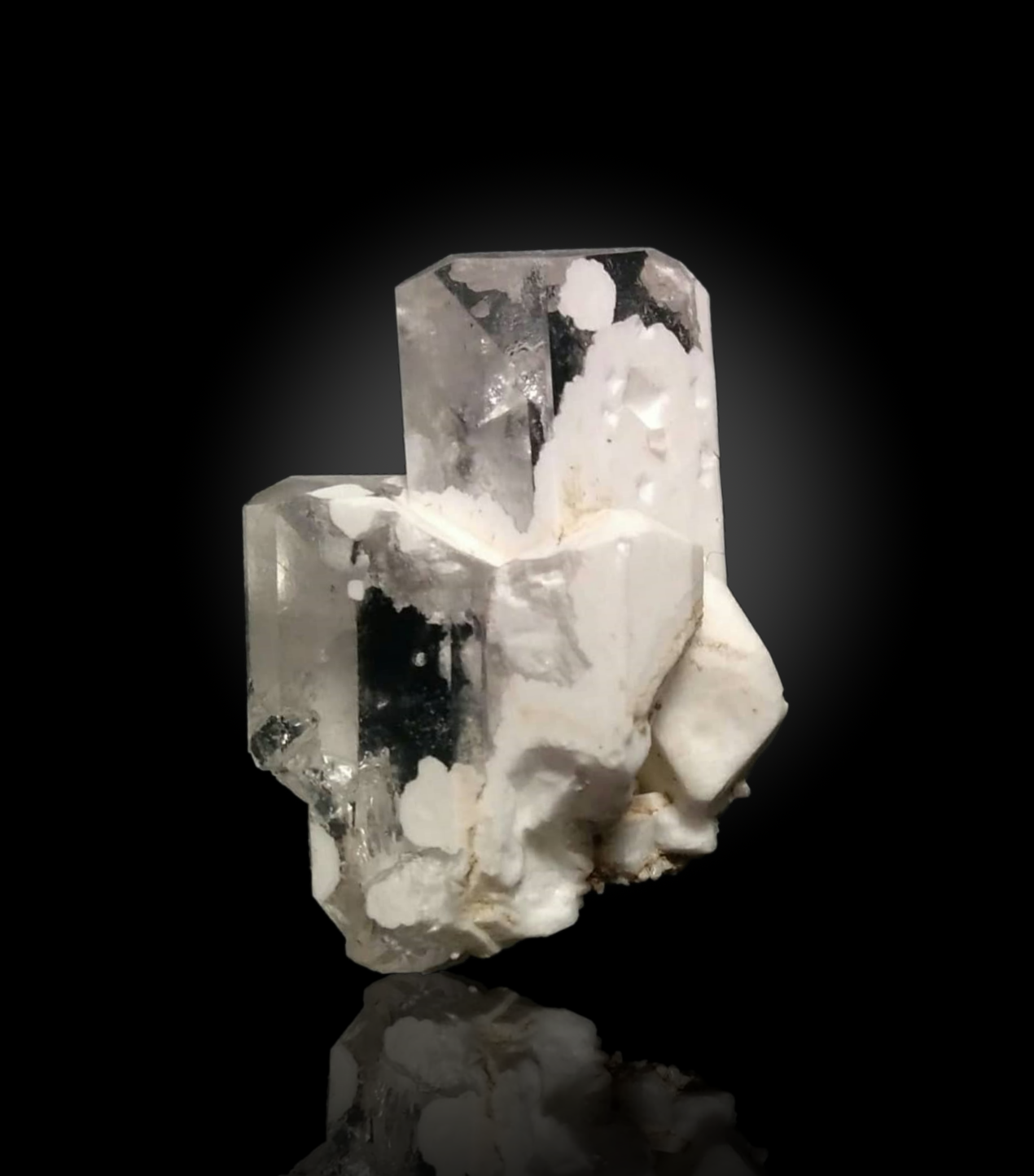 Farbloser Pikromerit mit beginnender Umwandlung zu weißem Leonit. 3,5 cm; ex. Bertold Suhner |