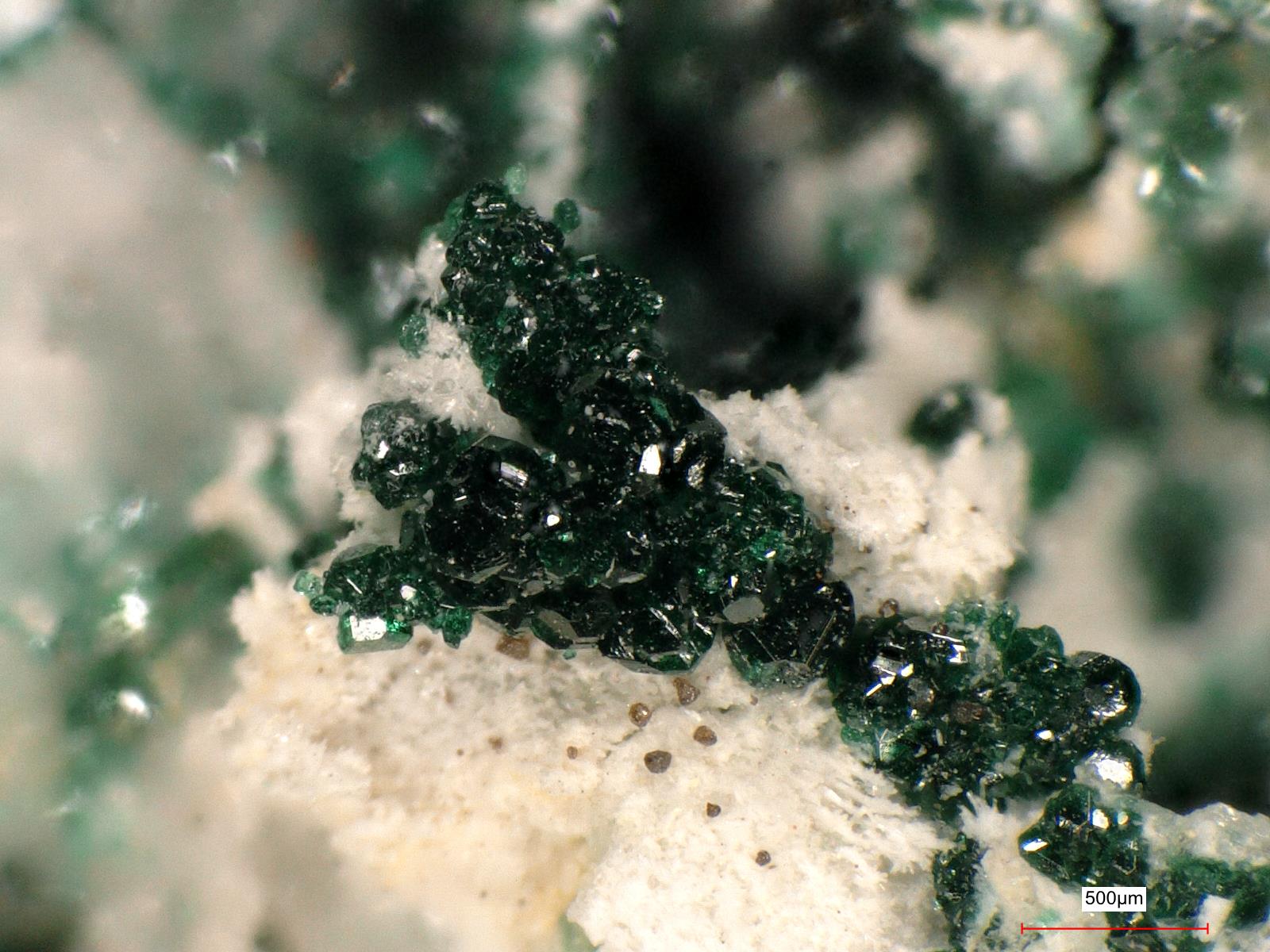 Dunkelgrüner Herbertsmithit - 4 mm Ausschnitt aus einer 7 cm großen Stufen. Analysiert mit SEM-EDS |