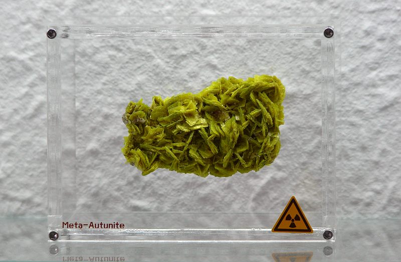 .. der war auch noch etwas größer und bestand aus mehreren übereinander gelagerten Platten und stammte aus Tschechien .. bis die Stufe dann eines Tages zusammen mit anderen rad. Mineralien .. trotz deutlichen Warnhinweisen auf jedem Etikett .. aus unserem aufgebrochenen Keller im Jahr 1999 geklaut wurden.