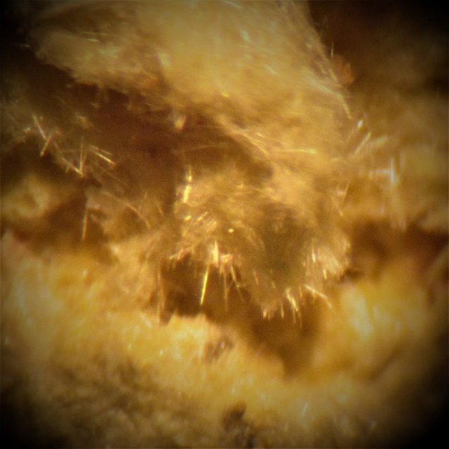 Unverwechselbar sind die Mimetesite von der Typlokalität Grube Neujahrsmaaßen bei Johanngeorgenstadt im Erzgebirge. Das Bild zeigt eine historische Kleinstufe, die insgesamt neun um 1 cm große xx trägt. Abgebildet ist die Vorder- und die Rückseite des Stüfchens. Naja, Jahre der Suche können eben doch zu einem passablen Ergebnis führen.