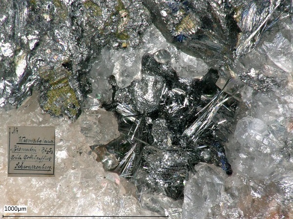 Etwas ganz seltenes vom Graul ist der Bismuthinit von der Grube Gottes Geschick, hier in kleinen xx mit Wismut und Chloanthit aus einer alten Sammlung. Primärerze traten hier gegenüber den Sekundärmineralien immer zurück. Es gab hier auch einen reichen Silberanbruch, davon sieht man auch nie was...