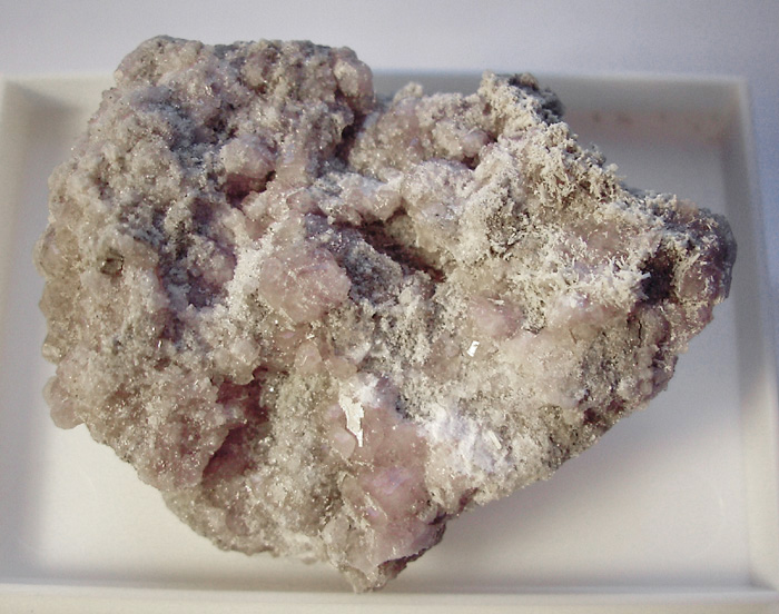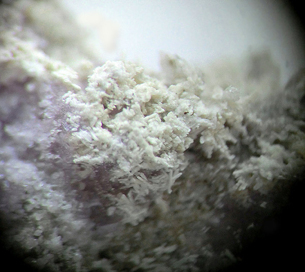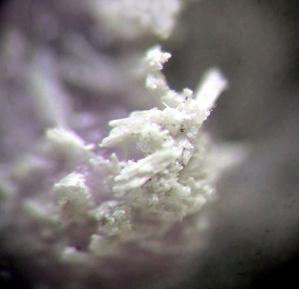 Der einzige noch taugliche Kristall sitzt an der Spitze oben. Die Kristalle rechts waren nach einigen Jahren plötzlich von einer grauweißen, staubig-körnigen "Patina" überzogen; vermutlich ein Zersetzungsprodukt aber welches? |