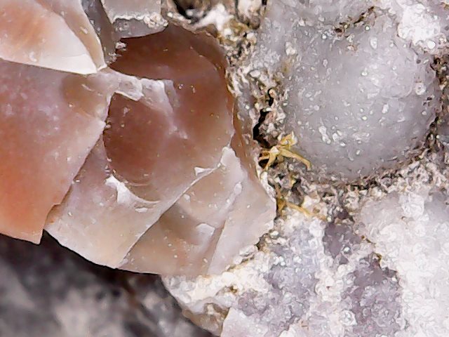 Nun zu meine Frage: Könnte das gezeigte Chalcedon,Karneol sein? Oder was meint Ihr?.Hoffe man kann es anhand der Bilder erkennen.Habe mal Bilder von der Kamera aus gemacht und unter dem Bino.