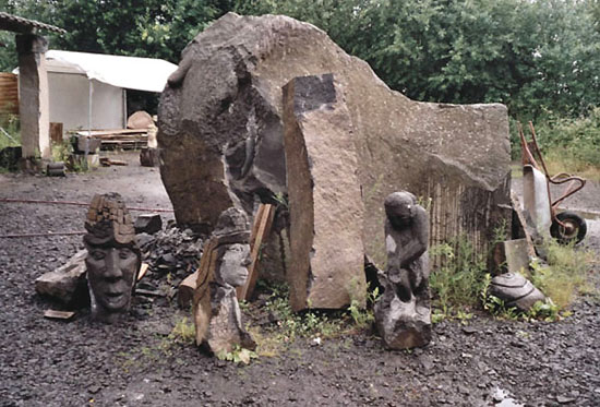 Schmiede sind zu sehen. Zahreiche Werkzeuge geben eine Vorstellung davon, wie Pflaster-und Mühlsteine bearbeitet werden. Der ’steinreiche’ Bildhauer Werner Geilen hat hier sein Atelier und meißelt hervorragende Figuren aus dem Stein heraus, wie die Bilderauswahl im Fototeil anschaulich belegen dürfte.