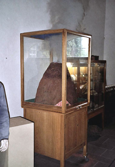 beeindruckend demonstriert. Dabei hörte man zunächst der Tonbandstimme zu, die nochmals die Vorgeschichte zu diesem Eifelvulkan erläuterte; danach wurden wir gebeten etwas zurückzutreten und der Vulkan brach mit Getöse aus. Die lautstarken Eruptions-Geräusche, ebenfalls über das eingebaute Tonband zu hören, stammten dabei von einem echten Vulkanausbruch des Ätna in Sizilien. Die Rauchsäulen des ’Mini-Vulkans’ waren täuschend echt zu sehen; ebenso die herausgeschleuderten ’Lapilli’, die eher kleinen Bonbons statt Bomben (Lavabomben) ähnelten