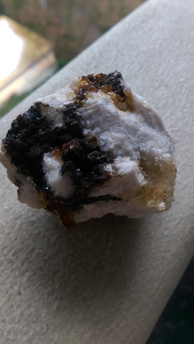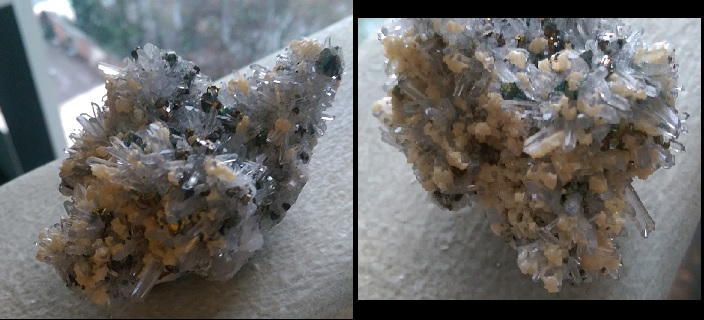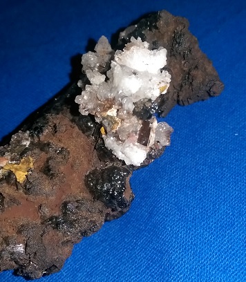 Mineral7 werde ich mit einer Stufe vergleichen die gerade auf dem Weg zu mir ist. Ich habe eine gleich oder ähnlich aussehende Stufe auf der Messe in Phoenix gekauft und ich meine mich zu erinnern es war Calcit, Siderit und Pyrit. Die hier gezeigte Stufe hat aber regenbogenglänzige Kristalle weshalb ich eher auf Chalcopyrit statt Pyrit getippt habe (bei der Stufe aus Phoenix sind sie silbern ohne farbigen Glanz).