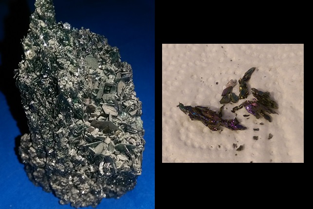 Siliciumcarbit stimmt bei Mineral8! Das Foto zeigt nicht wie regenbogenmetallisch es wirklich ist. Meine Schwester arbeitet u.a. mit diesem Material und hat es identifiziert, und ich erinnere mich dass ich es auf der Messe gesehen habe. Ja, leider kein "echtes" Mineral, aber es macht sich nett aus in der Vitrine