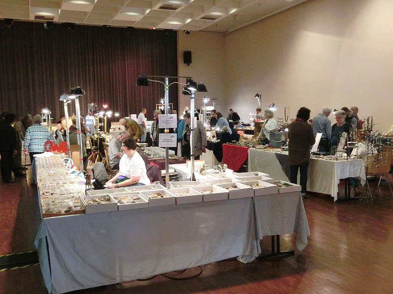 Alle Mineralien, die für 0,50 Cents bis max. ca. 6,- Euro gekauft werden konnten, kamen alle dem Verein als entsprechende Erlöse zugute. Damit der Besucher auch überhaupt etwas preiswert kaufen konnte und damit der Verein auch was davon hatte, durften die Preise natürlich nicht zu hoch sein. Das betraf alle Stände von Vereinsmitgliedern. Es hatten 4 Vereinsmitglieder mit ihren Ständen kurzfristig abgesagt; zum Glück fand sich noch rechtzeitig 4-facher Ersatz zum Einspringen.