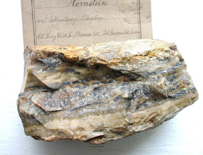 Handstück mit Proustit und Galenit auf Hornstein vom Kurz Glück Spat, Eleonora Erbstolln. |