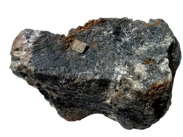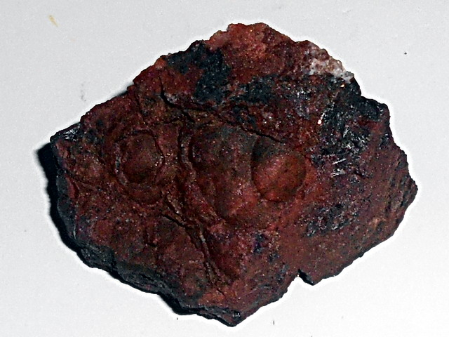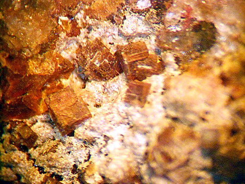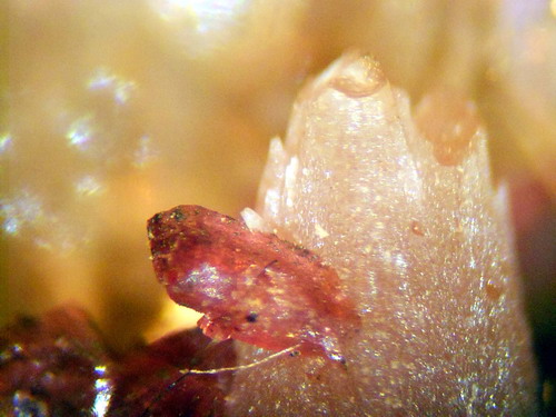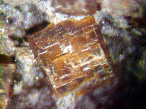 "Wismutocker", pseudomorph nach Skutterudit. Breite des "Kristalls" etwa 5 mm. |