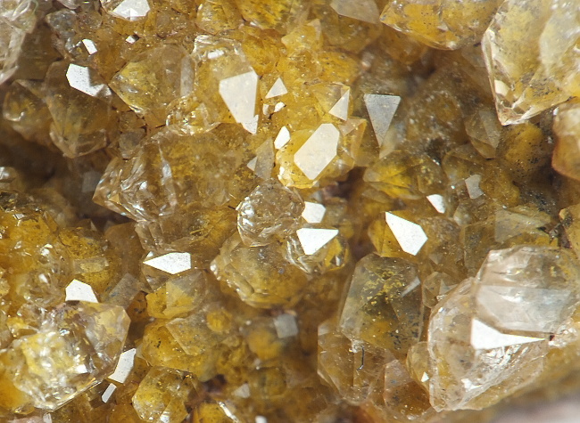 Bei mir liegen etliche Stüfchen, die als Wakefieldit-(Ce/Nd) bestimmt sind. Der Wakefieldit bildet winzige schwarze XX aufgewachsen auf einen gelben Quarz-1, der teilweise von einer zweiten Generation mit klaren Quarz überwachsen ist. Das ergibt dann recht nette Phantome. Als Matrix fungiert ein grau/bunter Chalcedon.