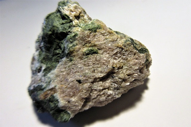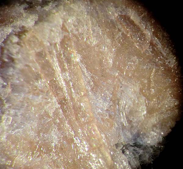 Götzenit - gelblich mit Rosastich, insgesamt plattig und z.T. auch strahlig ..