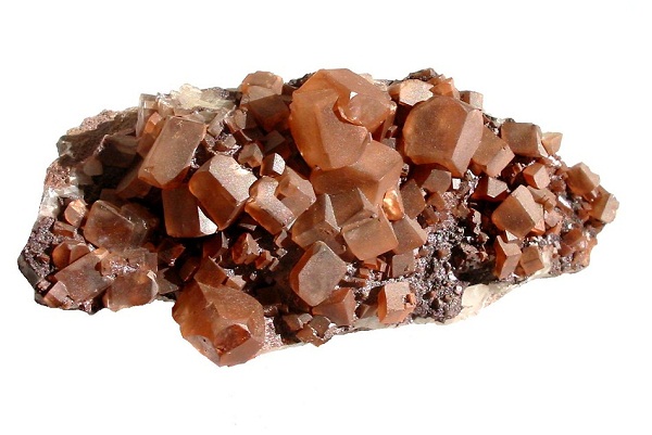 8 cm breite Druse mit honigbraunen Calcit-Skalenoedern aus der Kreidemergelgrube Alemannia, Höver bei Hannover, Niedersachsen. Eigentlich mehr eine Gegend für Fossilien, aber diese Calcite sind doch auch recht hübsch.