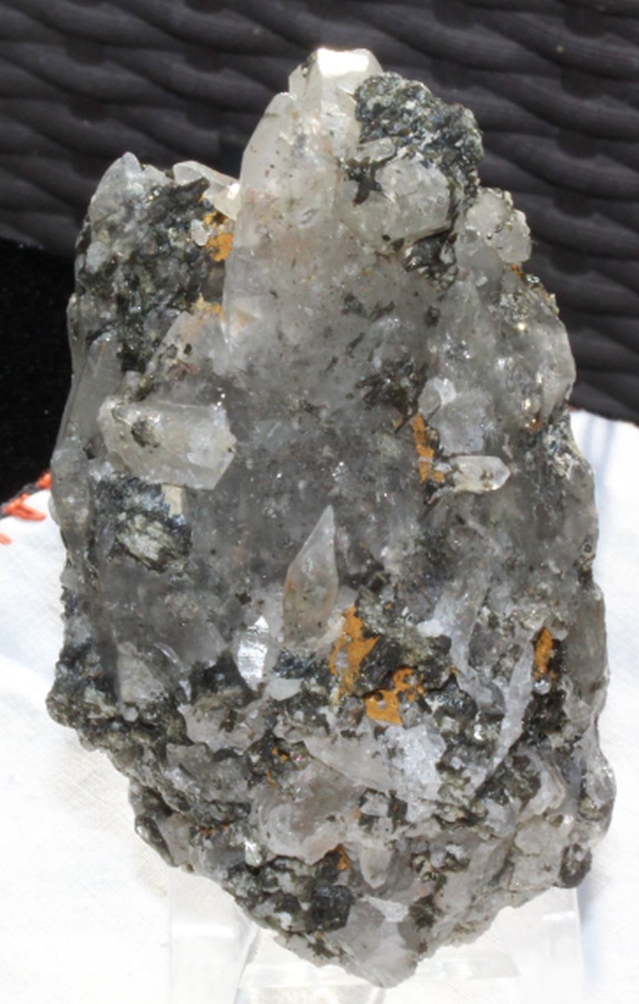 Die kleineren Kristalle, die um den zentralen Quarzkristall herum wachsen, können aus verschiedenen Mineralien bestehen, die jeweils ihre eigenen einzigartigen Eigenschaften haben: