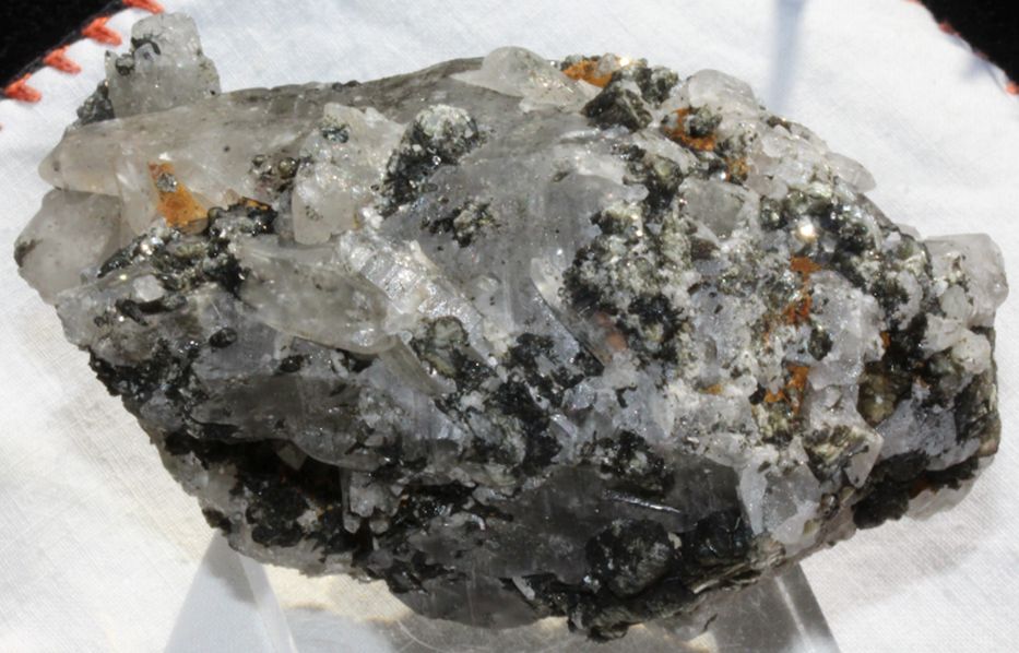 Calcit: Ein häufiges Calciumcarbonat-Mineral, Calcit kann in einer Vielzahl von Kristallgewohnheiten und Farben im Witches Fingerquarz gefunden werden.