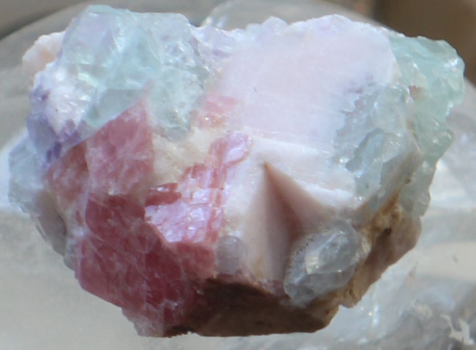 Feldspat: Eine Gruppe von felsbildenden Mineralien, Feldspat kann in verschiedenen Farben und Kristallgewohnheiten innerhalb von Witches Finger Quarz gefunden werden.