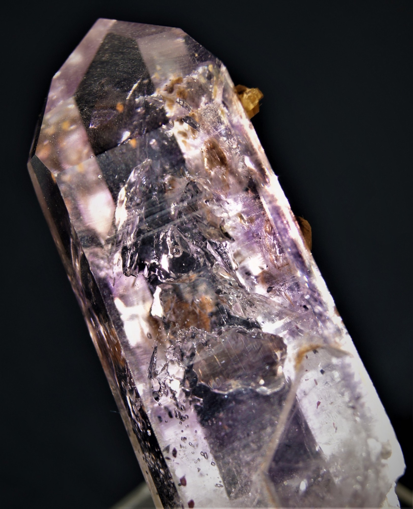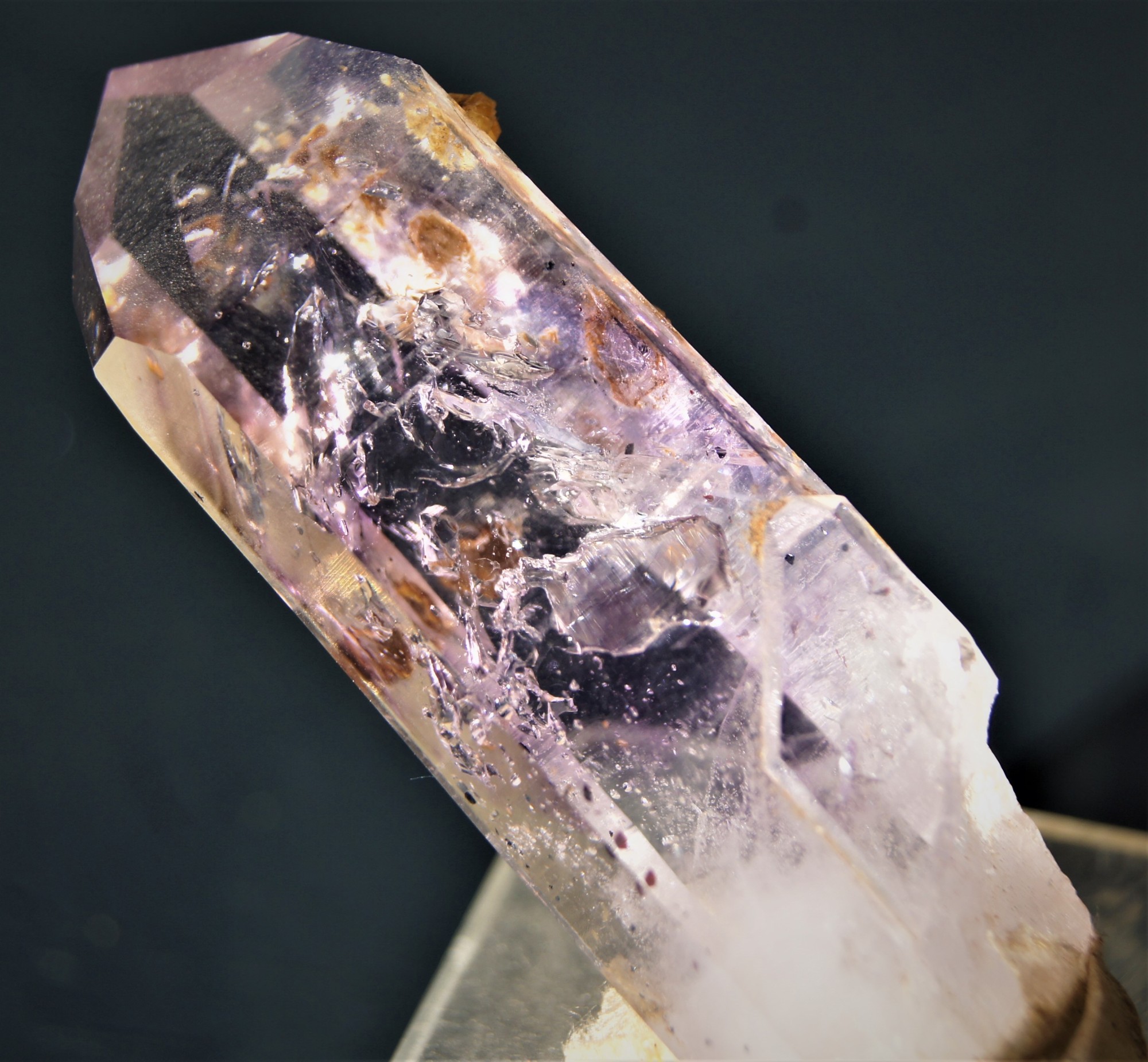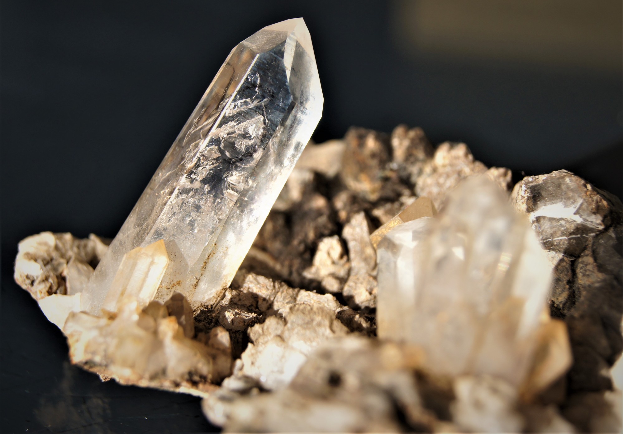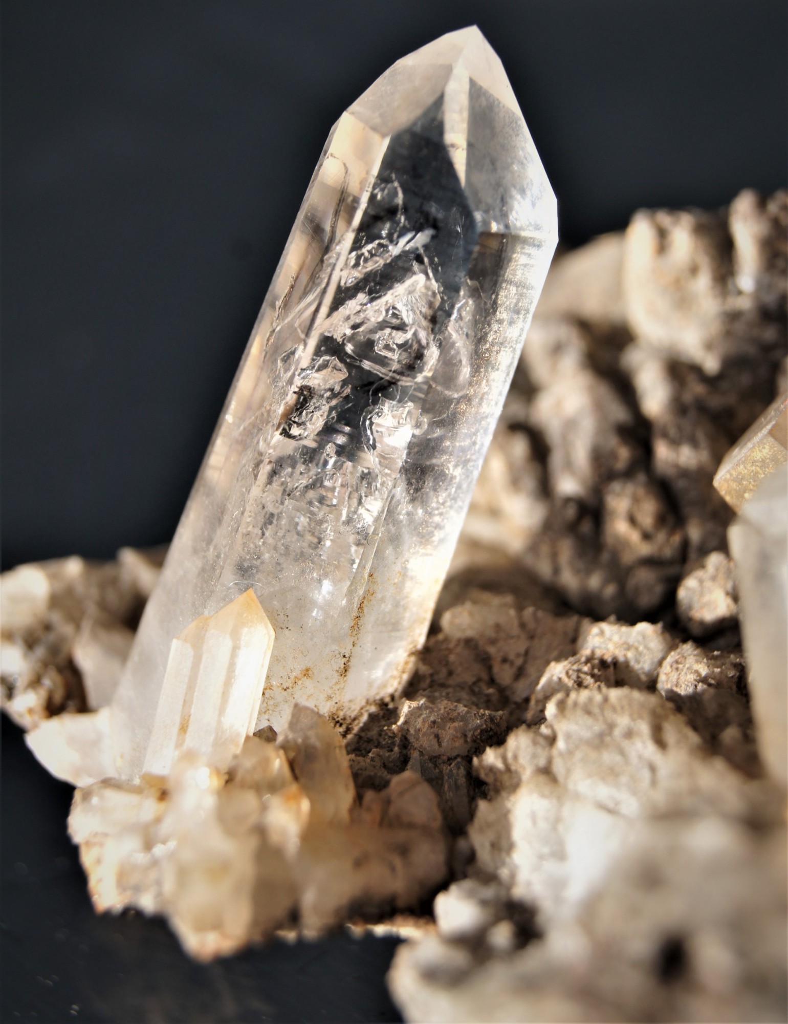 Bergkristall mit 2 Enhydros auf Matrix von den Goboboseb- Bergen, Namibia.