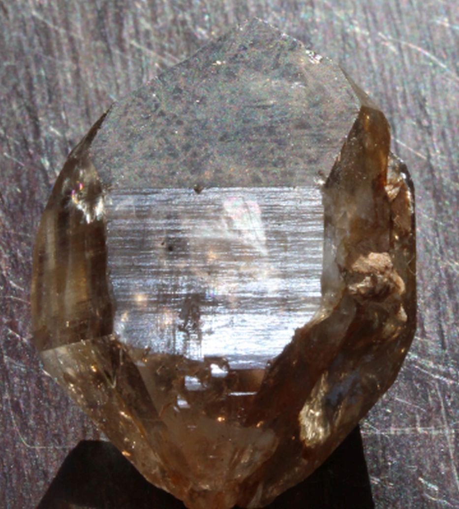 Wachstumsbedingte Einschlüsse: Das Muster wird durch Verunreinigungen (z.B. Kohlenstoff, Tonminerale) erzeugt, die den Kristall in sechs Sektoren aufteilen.