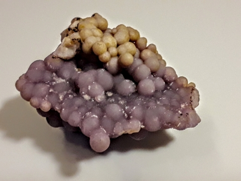 Andere bekannte Färbungen des "Grape"-Chalcedons (hier wohl evtl. als sedimentär gebildet einzustufen) sollen angeblich auf Mikroorganismen zurückzuführen sein, die wohl eine dieser Symbiosen mit Korallen bildeten.
