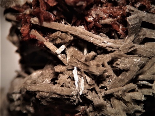 An anderen Stellen dieses MM sind noch weitere schöne Stellen dieses Minerals aber die Stelle, wo der rote Pfeil jetzt hinzeigt, war fototechnisch für mich noch am besten hinzubekommen (siehe Bildmitte).