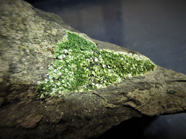 Ja, die xx sind auch mit dem bloßen Auge erkennbar und die Kleinstufe habe ich auch schon lange aber als ich vor ein paar Tagen wieder mal nach ihr sah (leider schon länger her *schäm*), war der eine Rand des Gesteins in farblose, bröselig asbestartige Fasern umgewandelt. Eine eindeutige Oxidation innerhalb der Sammlung, da auch das Kästchen nicht richtig luftdicht verschlossen war.