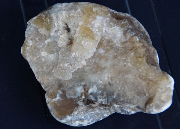 Also, mir ist der Fund runter gefallen. Der Aufprallklang "klang" eher nach Quarz. Zudem ist der Stein, trotz ausreichender Fallhöhe und Steinfußboden, intakt. Etwas, was ich von Flint nicht gewohnt bin.