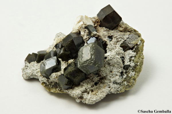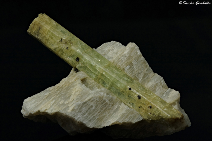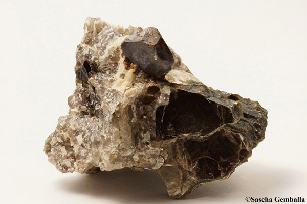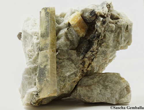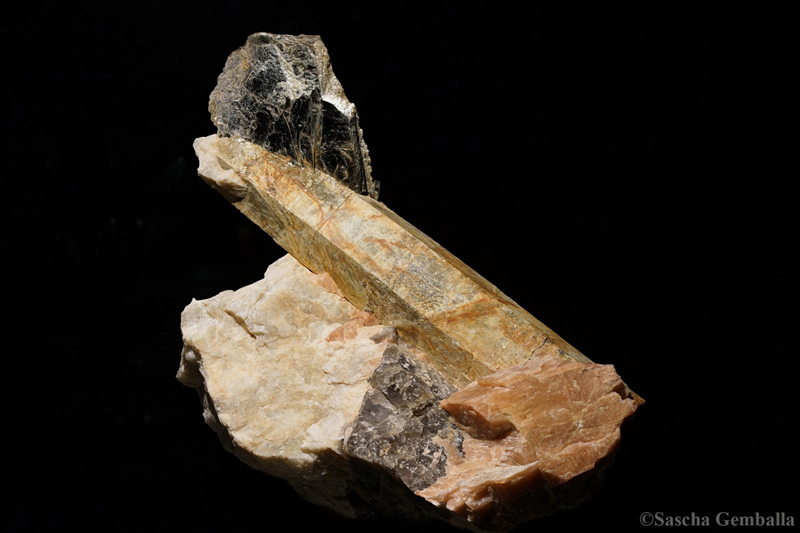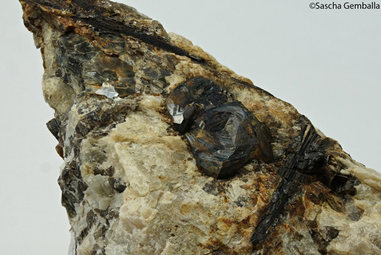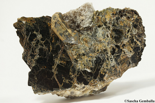 | Information: | Gadolinit-(Y) Eine Stufe ca. 13cm x 9cm x 2.5cm mit einem Gadolinitkristall 4.5cm x 1.8cm auf Biotit; Gefunden in Iveland in Norwegen. |