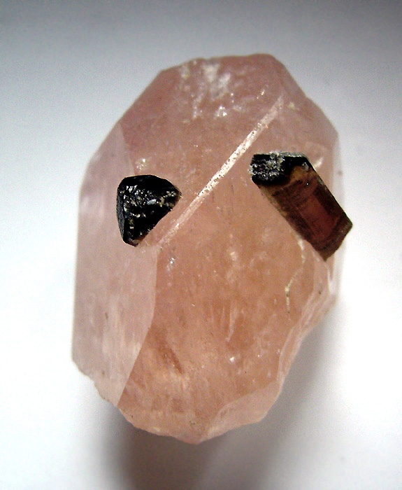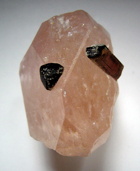 Die Abbildungen zeigen nun ein- und denselben Morganit-Kristall aus der afghanischen Laghman-Provinz; der Kristall mit den Maßen 2,5 x 3 x 2,7 cm ist durchscheinend (transluzent) und wurde von mir pro Foto leicht gedreht, damit man dabei auch möglichst viele der Flächen gut sehen kann. Die "Augen" dieses Morganit-Kristalls stellen übrigens zwei Turmalin xx dar.