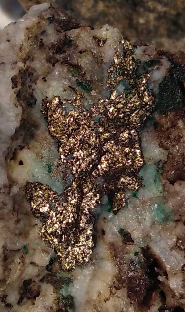 Evtl. sind es ja nur Flechten und Moose? Falls das ausscheidet, könnten es einfach bereits abgelöste oder verwitterte Beläge sein. Diese Beläge könnten dann alles Mögliche sein .. organischer Natur, sulfatische Ausblühungen, weiche krümlige Tonminerale, wie mancher Montmorillonit z.B. u.a.