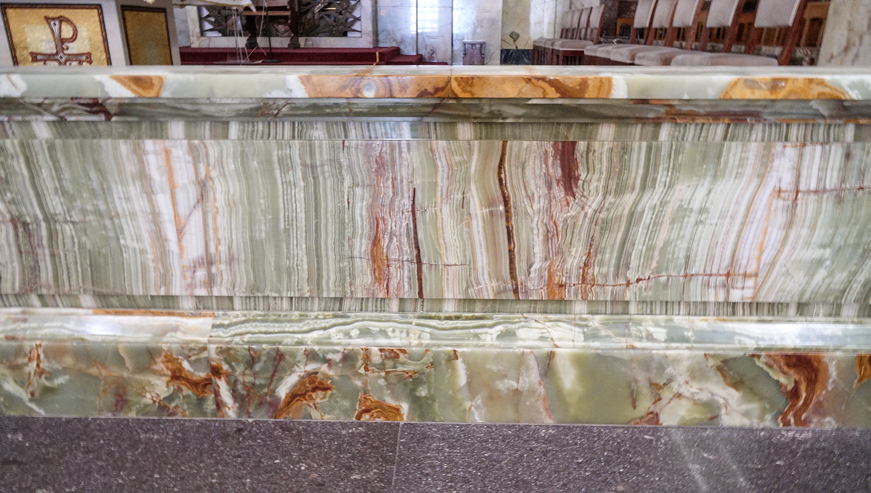 Ich weiß nur, dass Onyx ein schwarz-weiß gebändeter Achat ist .. also Kieselsäure (Quarz) und dass Marmor ein metamorpher Kalkstein ist .. also dass wir hier von Kalziumcarbonat sprechen. Ein "Onyxmarmor" ist daher für mich schon ein Widerspruch in sich. Ich halte daher schon die Bezeichnung alleine für falsch.