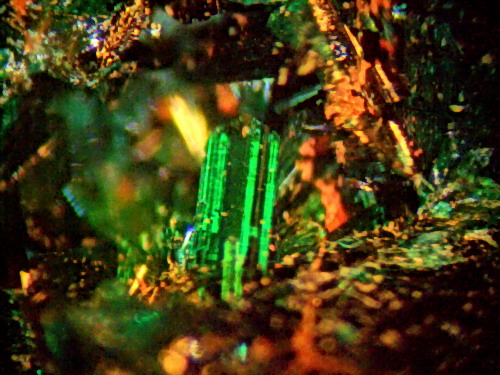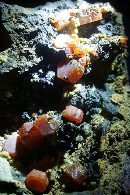 auch von Marokko habe ich nur Einzelstücke. Hier mal Vanadinit aus Mibladen. Das letzte Bild sieht mit dem etwas dunklerem Licht aus , wie aus einem Märchen