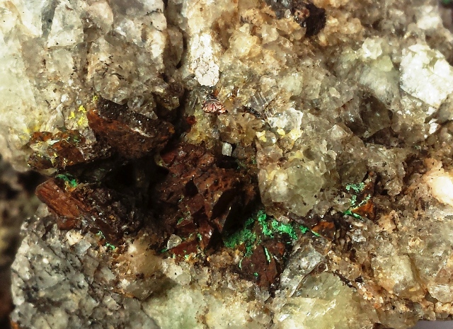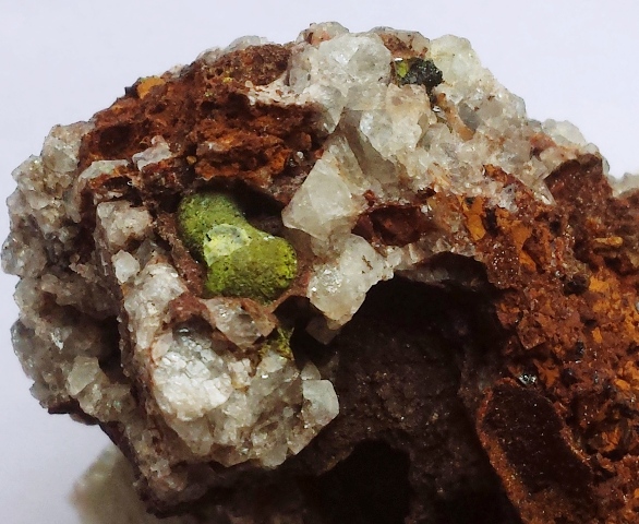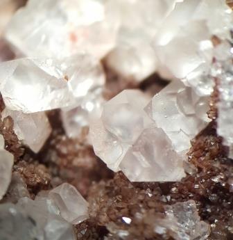 Hier noch eine interessante Pseudomorphose, gefunden am Mühlrain bei Ruhla. Eine Pseudomorphose von Quarz nach Baryt. Die ehemaligen tafeligen Barytkristalle bestehen nun aus kleinen gedrungenen Quarzkristallen.
