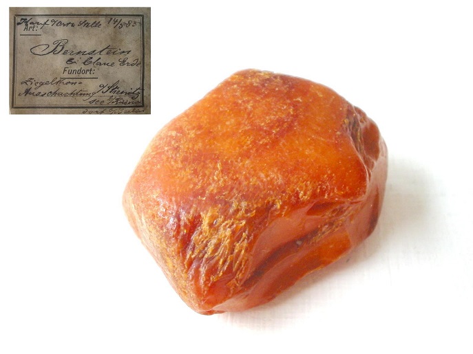 Das fossile Harz von diesem Fundort ist mit Sand zu knolligen Gebilden verwachsen, die mal als Brennmaterial verwendet wurden. Man vermutet, dass es sich ursprünglich mal um ein dünnflüssiges Harz gehandelt hat, das von seiner Erzeugerpflanze direkt auf sandigen Boden getropft ist, sich hier mit den Sandkörnern verband und sich langsam verfestigte.