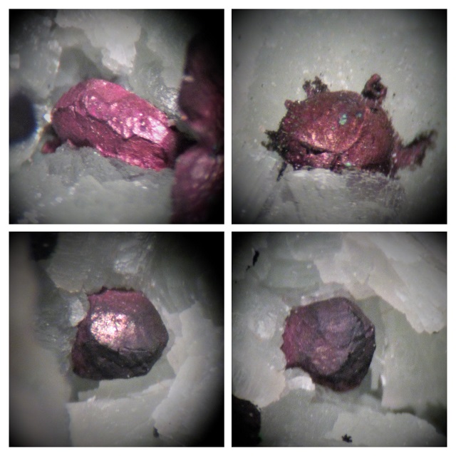 Cuprit (Kupferdioxid) und Tenorit (CuO) sind dann im Gefolge auch logische Vertreter einer solchen Paragenese, die man dann auch schon sehr fix unter dem Bino ausmachen kann.