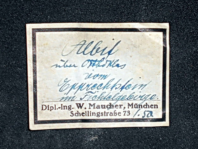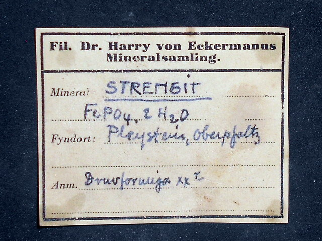 von mir . Deine Eisenblüte lag mit anderen Stücken in einem Kästchen. Die ältesten Etiketten waren von der Bergakademie Freiberg, eben um 1850. Hier ein Bild von dem Stück, dass ich mir - mit Zetteln - selber behalten habe.
