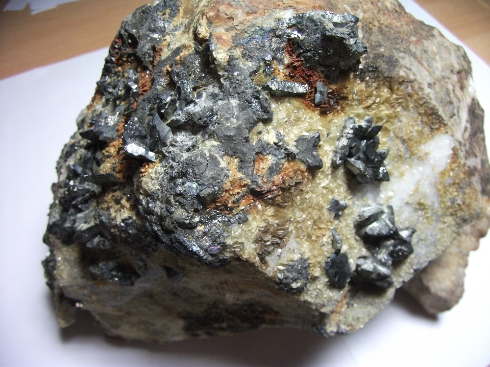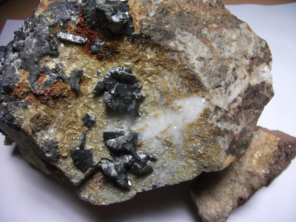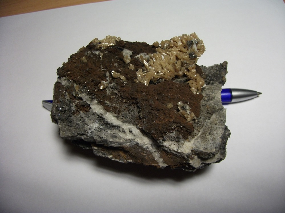 Kleine Handstufe aus stalagtitischem Limonit von der Grube Ohliger Zug bei Daaden. Der gelbliche Überzug auf den Limonitaggregaten oben links besteht aus winzigen, aber gut ausgebildeten Beudantit xx. |
