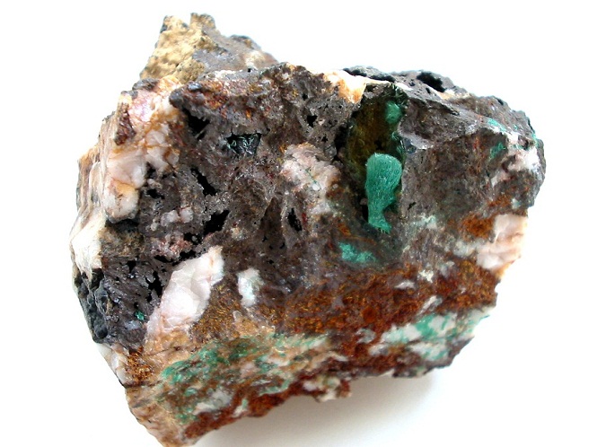 Typische Malachitstufe von der Grube Jakobskrone bei Achenbach mit einer über 1 cm hohen Malachitgarbe. |