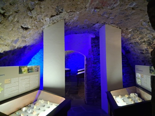 Und zum Anderen sind da auch noch Museen zum Besichtigen drin. Vor allem das Mineraliengewölbe, das Stufen aus dem Vogtland zeigt, hab ich mir genauer angeschaut. Dieses Fluorit-Ochsenauge aus Schönbrunn hat mich ganz besonders angeschaut: