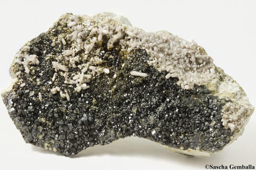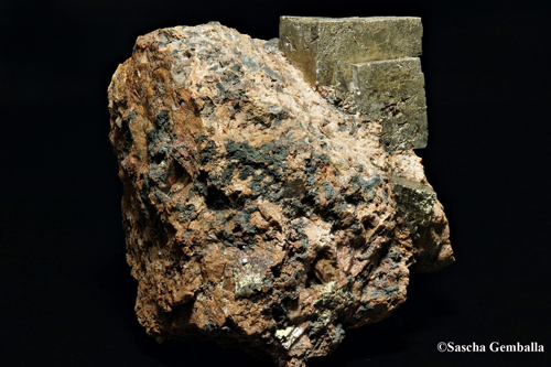 Pyritkristall ca. 2.5cm x 2.5cm x 2.5cm auf Matrix; Gefunden in der Landsverk 1 Grube bei Evje in Norwegen.