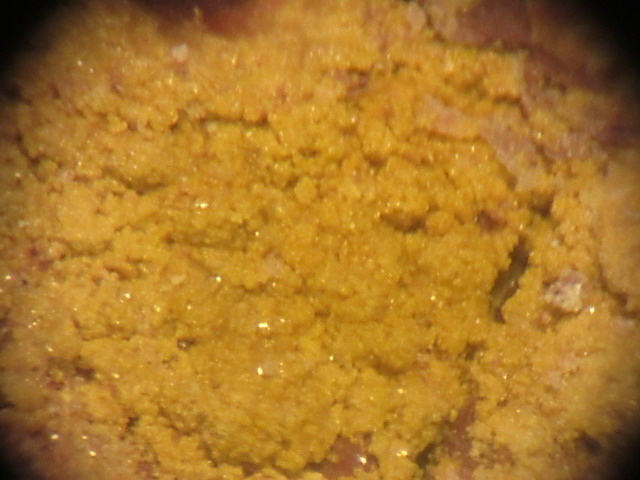 Bei kurzwellligen UV fluoreszieren eine Partien in der Mitte intensiv grün.
