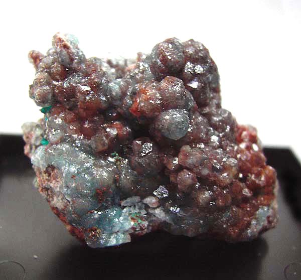 Hier eine Tsumeb-Stufe, die ich vor Jahren mal eingetauscht habe: laut Etikett eine (Teil-) Pseudomorphose von Duftit nach Cerussit nach Mimetesit, vermutlich aus der 1. Oxidationszone. Also sozusagen eine doppelte Pseudomorphose (ich habe noch nicht untersucht ob das graue Mineral in Inneren wirklich Cerussit ist oder "nur" Mimetesit).