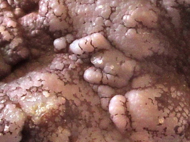 Besteht diese Kruste aus Manganoxid,handelt es sich um Rhodochrosit. Siderit hat eine Eisenoxidkruste.