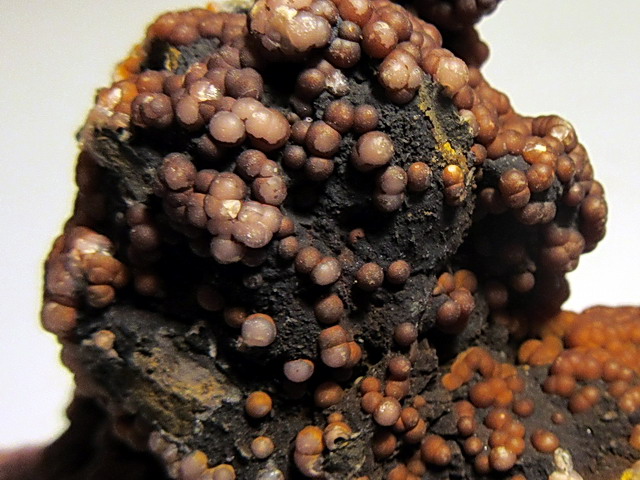 Aggregate von sehr heller Farbe gefunden,die von einer schwarzen,glaskopfartigen Kruste überzogen waren.