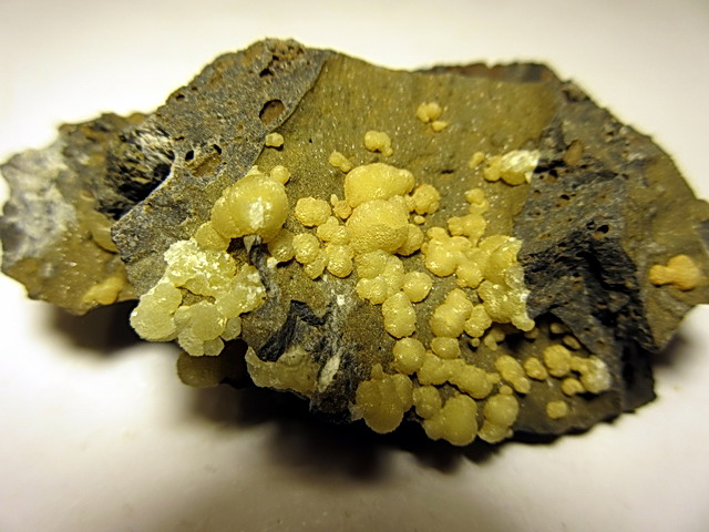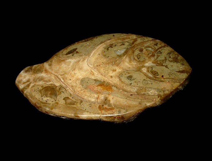 Mit Calcit gefüllte Gastropodenquerschnitte (Actaeonella) kennt man vor allem aus Österreich. Hier ein Exemplar vom Hohen Göll bei Berchtesgaden im Allgäu, gefunden im Jahre 1917. |
