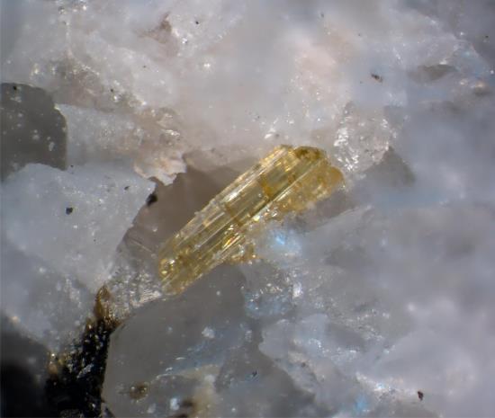 | Information: | Gelblicher Tsilaisit auf Aplitmatrix, von der Typlokalität bei San Piero in Campo. |