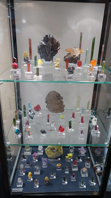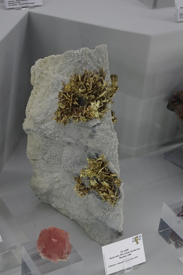 Besonders Erwähnesnwert sind hierbei ein Proustit aus dem Erzgebirge ( den besten den ich bisher gesehen habe) den wahrscheinlich größten Anatas der Alpen, ein Topas aus Murzinka (auserhalb russischer Staatssammlungen und Museen wird es vermutlich keinen besseren geben) und einer gigantischen Goldstufe. Diese Stücke waren in einer Vitrine eines Privatsammlers zu sehen.